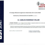 Carlos Rodrigo, from Universitat Jaume I (UJI), has been awarded first prize for Best Master’s Thesis in Industrial Engineering by the Professional Association of Industrial Engineers of the Valencian Community, Spain. The award ceremony took place on December 12th in Castellón.