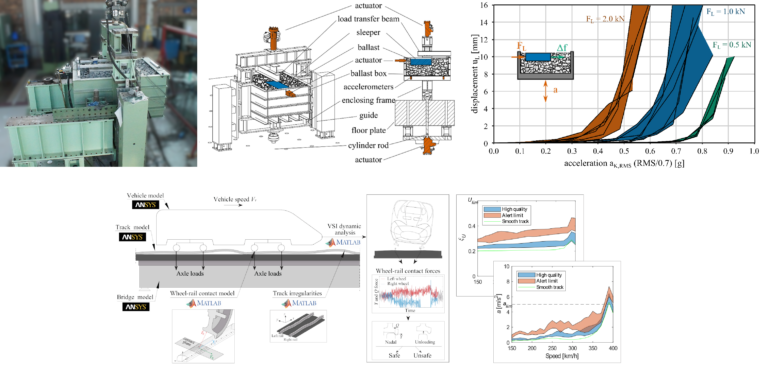 WP5 addressed the relevance of acceleration limits, given that excessive deck vibrations can compromise ballast stability, leading to settlement, lateral creep, and reduced track resistance, which are critical factors for safety and maintenance. To tackle these challenges, the consortium combined shake table experiments, full-scale bridge tests, and advanced numerical simulations, including Discrete Element Modelling and probabilistic safety analyses.